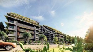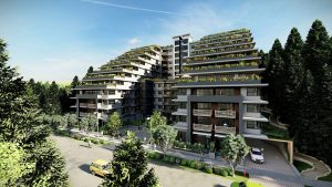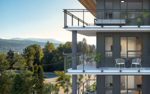 Anchor is a stylish collection of well-appointed yet affordable 1, 2, & 3 bedroom urban homes with a focus on details from the onset. Almost every residence features a flex room with primary living spaces with 9’ ceilings designed to maximize functional efficiency. Elegant and sleek interiors with clean lines and well-thought-out floorplans inviting the abundance of natural light indoors through the large windows and balconies, highlighting the living areas creating a relaxing atmosphere. The exterior materiality displays monochromatic hues of white and silver, with textured elements complementing the organic feel of the green roof space, further enhancing the serenity and balanced environment of the surroundings of Port Moody.